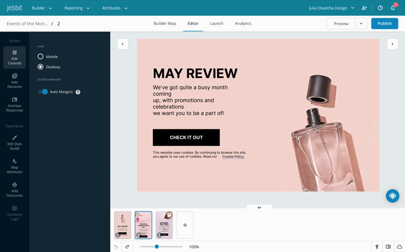 Designed a real-time preview feature for an experience builder platform, enabling creators to visualize their content across devices before publishing.